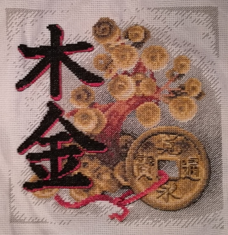 После феи дошила иероглиф, осталось постирать и монетки пришить