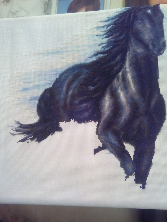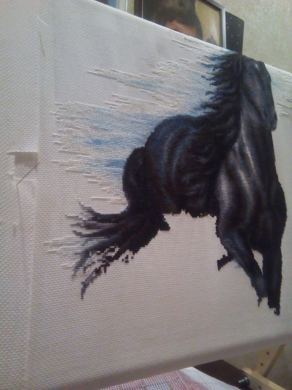 Всем привет! Поздравляю с началом весны!!! Хотя у нас весной и не пахнет- два дня метели, дороги не чищены, каша везде- ужас!!! Эта неделя в плане вышивки была не плодотворной... Я в разъездах-то больницы, то документы, то в гости))) Продолжаю ковырять хвост у коня. Вот продвижение: