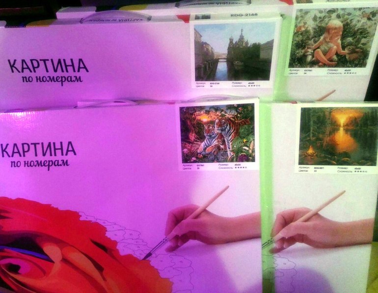 А ещё заказала через интернет картин по номерам, так сказать впрок. Под разные цели. Были по бешенной акции, поэтому взяла аж 4! Но кнечно качество на картинке в интернете не соответствовало тому что на картинке на упаковке, и не в лучшую сторону. Но посмотрим на результат!