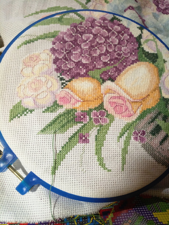 В этот букет влюбилась "Нежный цвет гортензии"))) оттенки цветов очень нежные, радуют глаза) вышивалась очень легко, но правда долго)