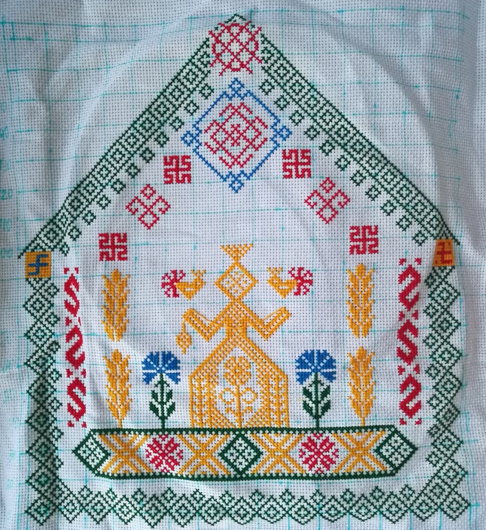 Я закончила Макошь, осталось постирать, отутюжить и оформить, ну пока такой вид