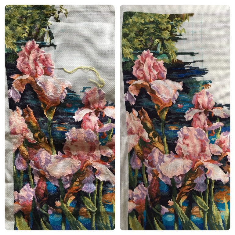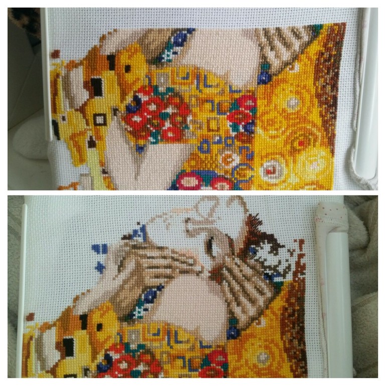 Всем привет!!! Сначала покажу своё продвижение по вышивке. Всё по плану, прибавился верхний угол слева. Было