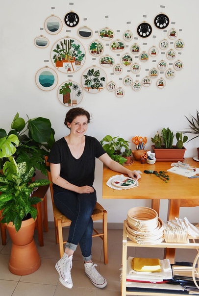 Сара К. Беннинг - американская художница, в настоящее время живет в Менорке, Испания. Родом из Балтимора, она закончила художественную школу при Чикагском институте искусств. Вскоре после получения образования, в 2013 году, девушка, работая няней, в свободное время начала совмещать рисование с любимым расслабляющим хобби - вышивкой. Это увлечение быстро захватило ее, превратилось в любимую работу, и теперь Сара творит в своей солнечной квартире в Испании. На ее вышивках изображены цветы, которые в изобилии растут в квартире и в оранжереях возле дома художницы.
