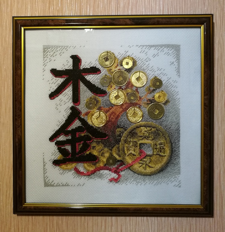 И наконец пришила монетки и оформила в рамку иероглиф, в прошлом ВД вышивала, кто помнит