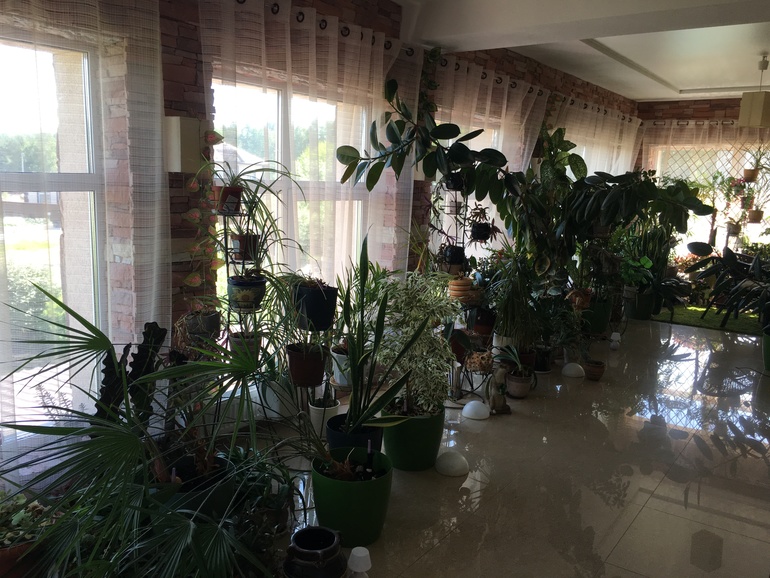 А покажи, пожалуйста зимний сад. И кто за ним ухаживает? Немножко продвинулась вышивка, хорошо!