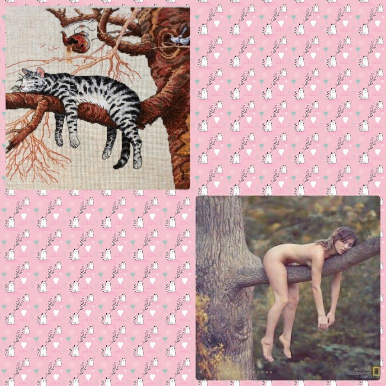 Сегодня на Фб увидела фото девушки на дереве. Картинку ассоциировали с Пушкинскими строками о дубе, цепи, коте и т.д.))) А с чем картинку ассоциировала Я??))))