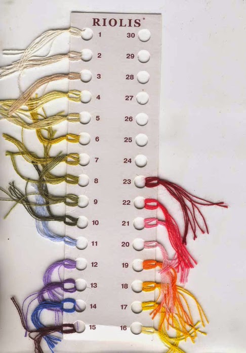 Это шерсть риолис... Там палитра не такая большая как у гаммы или дмс, можно на глаз подобрать по фото. У нас моток толи 6 руб толи 8 руб стоит. Тем более у Вас вышивка цветов и не будет критичны если на тон ошибетесь