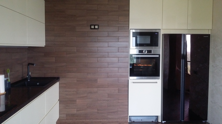 От двойного холодильника я просто в легком шоке. Все помещается и в морозилке можно хранить заготовки - очень удобно. Правда мы изначально просто бежевый в стиль кухни смотрели, но потом муж этот где-то откопал, со стеклянными фасадами. Когда планировали кухню, то на этой стене где техника, полностью делали перепланировку, тк изначально там вход на кухню был. Так муж все по миллиметр рассчитал, что мы в эту зону, где изначально вход и проем был, вставили еще часть кухни. И встроенную технику. А еще не стоит забывать про коммуникации! Муж каждый миллиметр сам расчитывал и всю коммуникацию. И так во всей квартире. Именно поэтому он и пропадал здесь все вечера!