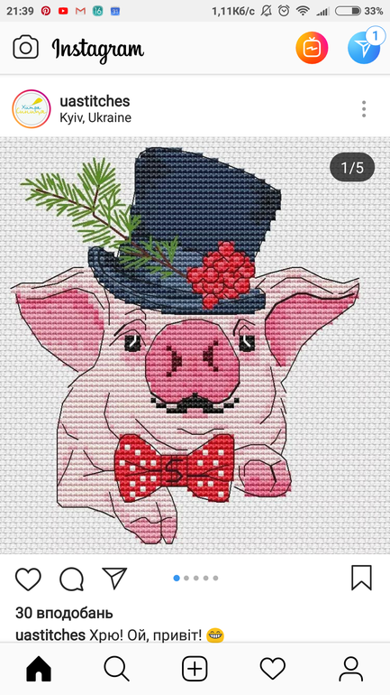 Девочки, нашла в Инстаграм предложение купить вот такие схемы свинок, к теме нового года ;) Заскринила себе и вижу, что их можно и по скрину вышить, всё предельно просто :) Может кому понравится :)