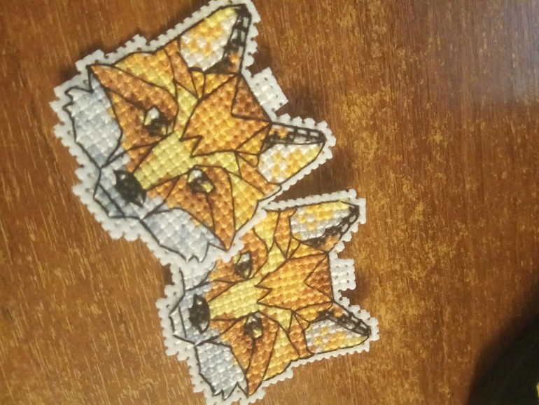 Решила обновить брелок для ключей. И вышила вот такого лиса.