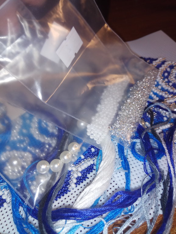 Ниточки остались, много бисера и бусин, вышивалось легко, бэк счётный. Это всё плюсы.