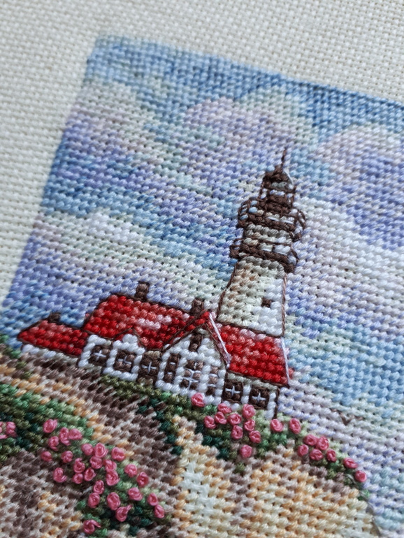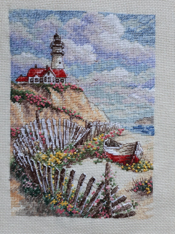 Красота необычайная! Цвета нежные, просто класс! Я тоже пыталась один маяк Димовский вышить, не смогла, тяжело смешивание крест/полукркст во всей картине, ладно бы значки в схеме хорошо отделялись, нет же, какие то все значки сложные и такая мешанина. Так и лежит((