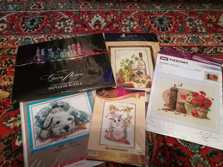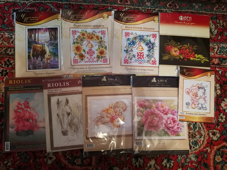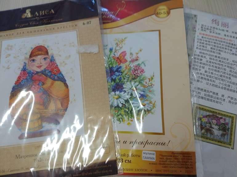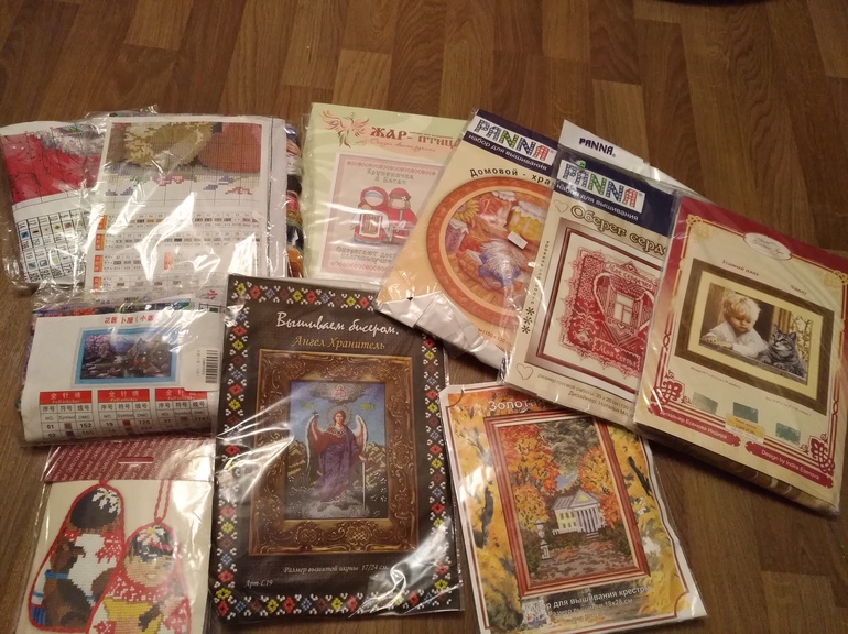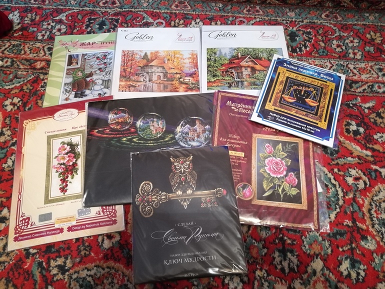Большой плюс в том, что набор вышивки - не одежда, мал или большой не станет, да и из моды вышивки не выходят. Так что может лежать в закромах и греть душу )))