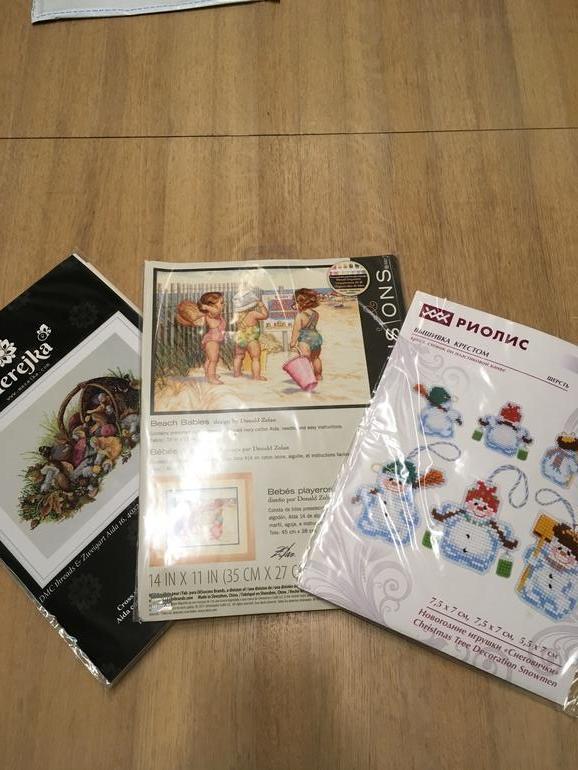 Завтра постараюсь сфотографировать: Грибное лукошко от Мережки, всем известные снеговички от Риолис, и малышки на пляже от Дименшес.