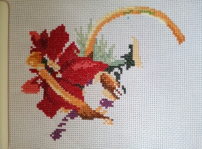Вышивала не много, всего пару вечеров, хотя продвинулась неплохо: