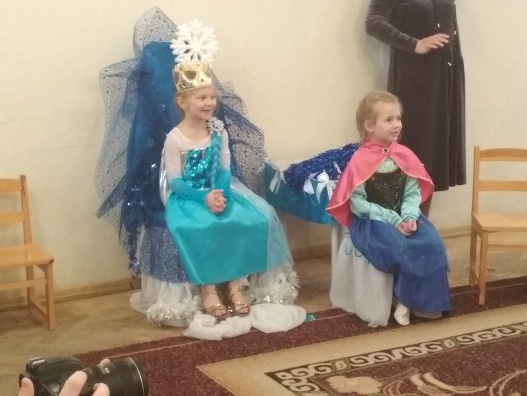 Утренник в саду -младшая в роли Ельзы