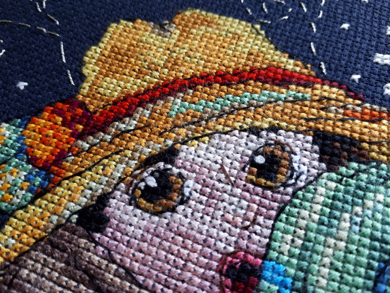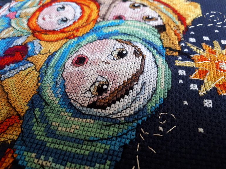 Вышивала подбором по схеме от "Мережка ", очень нравится эта серия) С удовольствием вышила бы всех деток)