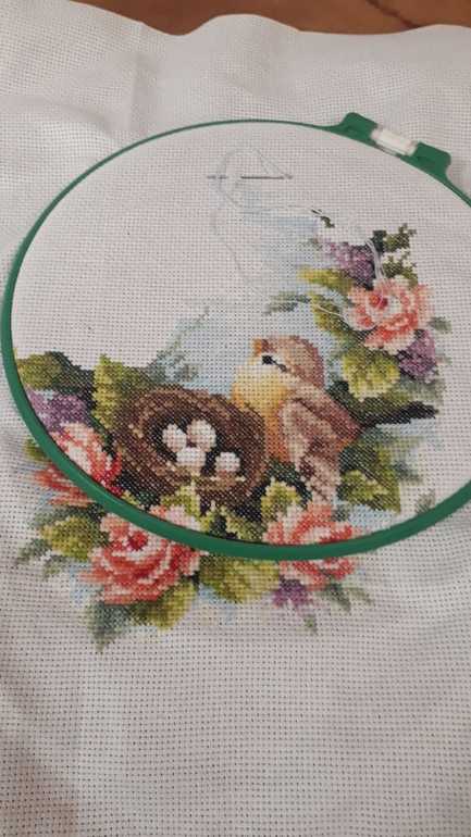 Я на прошлой неделе довольно много повышивала. Больше 1500 крестиков. С учетом моих одиночек, это реально очень много. Чуть больше половины листа с нуля.