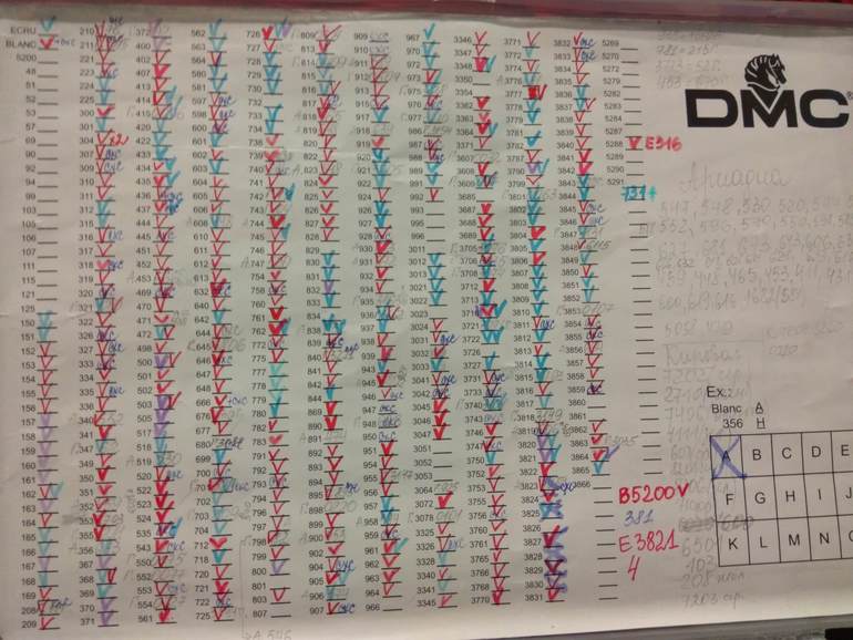 Такие цвета все красивые! А в таблице синим и красным галочки что означают? И для чего вообще собирают таблицу? Чтобы сравнивать цвет с оригиналом? Я никогда этим не интересовалась, но вот вышивая сейчас сравниваю с оригинальными нитками Дим от прошлого набора и мне не все цвета нравятся и чет даже задумалась о такой таблице.