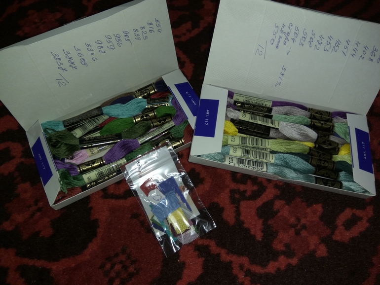 Я красным отмечаю ДМС, синим - его китайский аналог СХС, сиреневым - египетское мулине Пери