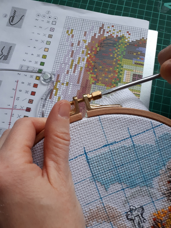 Но! Если я просила мужа "посильнее натянуть канву" ,то у него это получалось без проблем. Ну, думала я... он сильнее и затянуть винтик на пяльцах ему гораздо легче. Всё оказалось гораздо проще. После долгих лет моих мучений муж ,совершенно случайно, "раскрыл тайну золотого ключика ". В винтике на пяльцах есть специальная бороздка (шлиц) , берем отвертку и затягиваем его (В смысле винтик) до нужного нам натяжения.