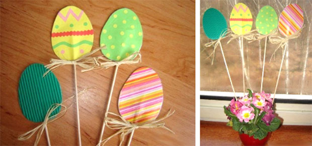 Если для ярмарки, то можно на пластиковой канве яички вышить, и на палочки . Примерно так: