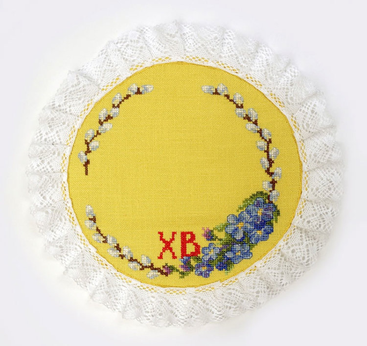 Добавлю еще такую малышку. Она не совсем пасхальная, но такая прям весенняя. Здесь мне осталось вышить совсем чуть-чуть, оформлю вместе с яйцами.