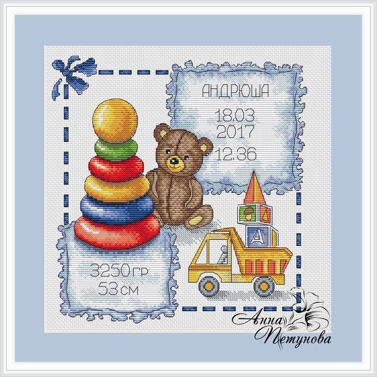 Долгострои и вышивальные процессыДевочки, переделала метрику с интернета, там не было места для имени и данных, я по-своему вставила (работала в Пэйнте, так что всё криво-косо, просто для общего представления). Выберите, пожалуйста, какой вариант вам нравится больше. И на какой канве - белой или бежевой. У подруги беременность после 5 лет бесплодия, очень хочется порадовать. Голосование под катом