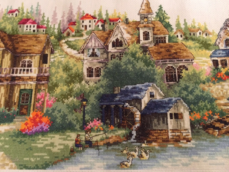 Долгострои и вышивальные процессыДавно я не отчитывалась о том как растет моя деревенька) Вышить картину за десять месяцев как я планировала не удалось. В весенне-летний период картина была отложена в долгий ящик. Ну никак я не могу вышивать когда душа требует прогулок! А вот долгими зимними вечерами посидеть с иголкой в руках милое дело)