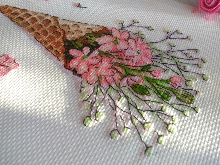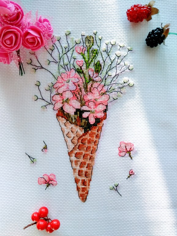 Оленька, Что нам девочкам, может запросто принести радость? Букет цветов и мороженое в вафельном стаканчике )))) Смотрю на вышивку и сразу теплые и радостные чувства в душе, не говоря уже о самой по себе красоте крестиков!