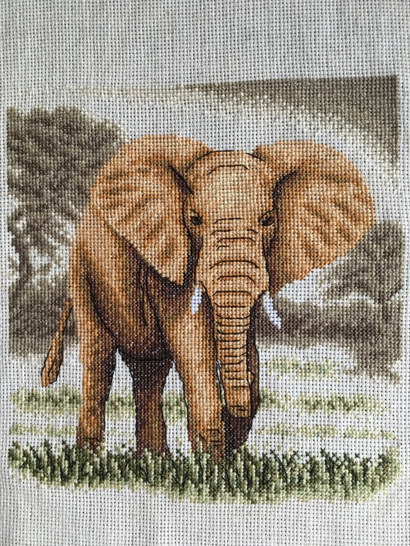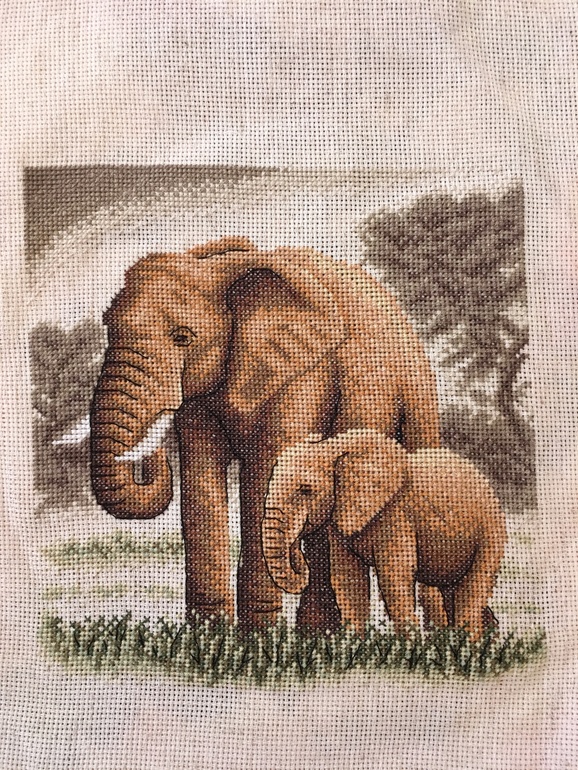 В первую очередь хочу дошить триптих слонов от панны. 2 картины уже готово