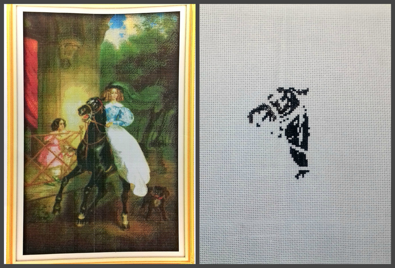 А Всадница вот(она продвигается очень медленно, так как Феникса я вышиваю на работе и по дороге на дачу/с дачи, а Всадницу - только дома, а там я бываю редко).