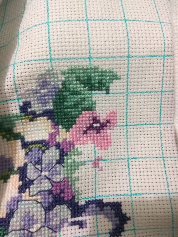 Случилось то, чего я так боялась, когда бралась вышивать Венок всех сезонов от Дименшенс перенабором 😫 ЦВЕТА НЕ СОВПАДАЮТ! (((( Смотрим на розовый цветочек. Это один из тех многих, что должны быть сиреневые (см.фото оригинала внизу). А как вам эта серединка??((((