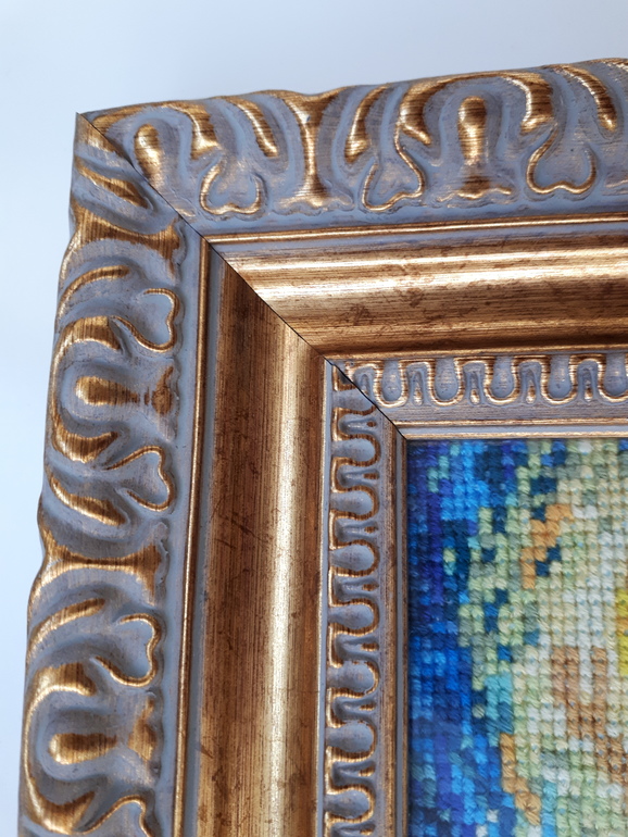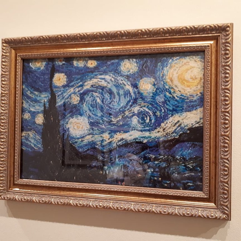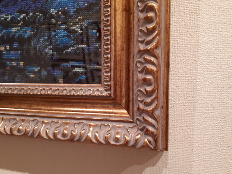 Вышивка крестом ГОТОВЫЕ РАБОТЫ"Звёздная ночь " дома. Стекло бликует, поэтому только такой ракурс