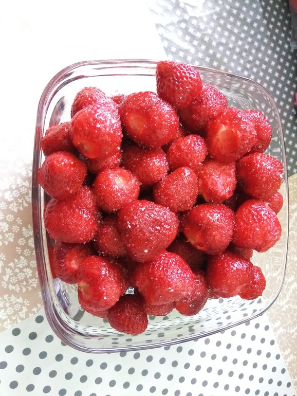 А клубники, клубники то сколько! У нас на грядке только-только первые ягодки пошли ) Мне даже сегодня 2 штучки перепало скушать ) Дочка очень плохо кушает их (