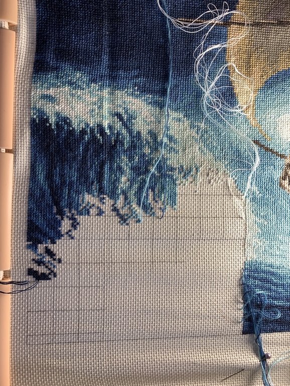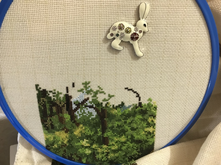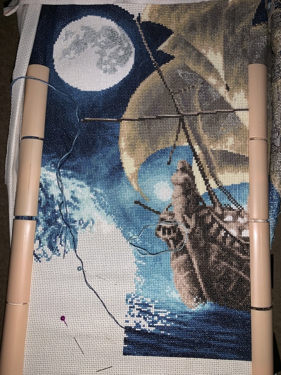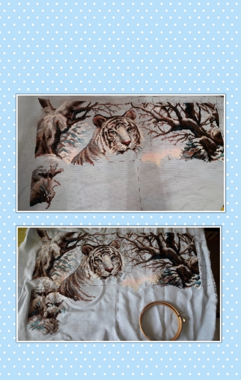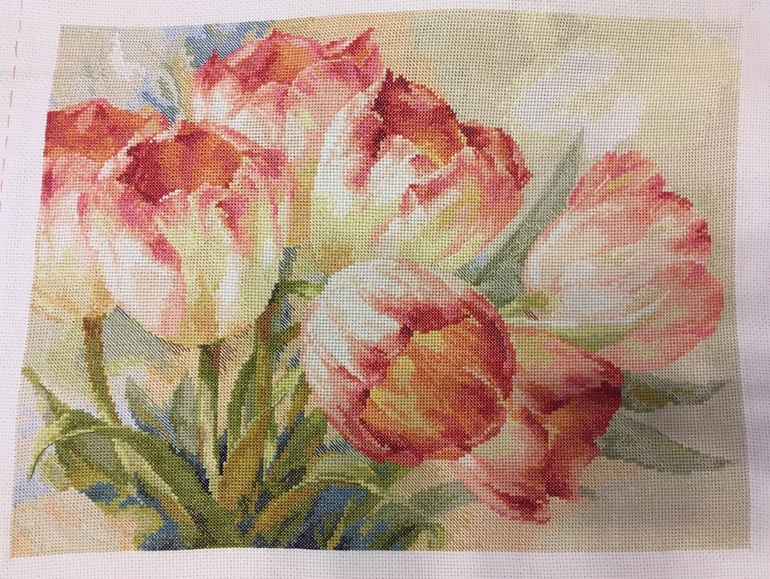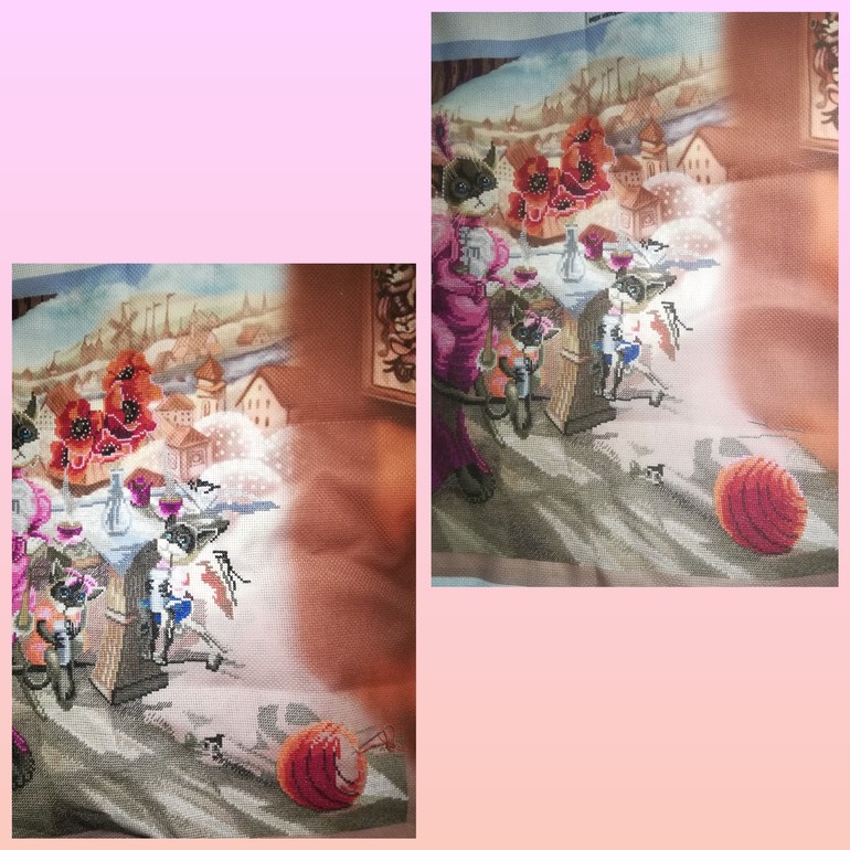 Вышиваю на небольших пяльцам, поэтому извините, что канва сильно измятая..