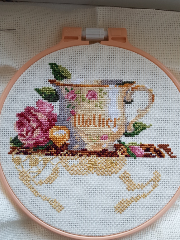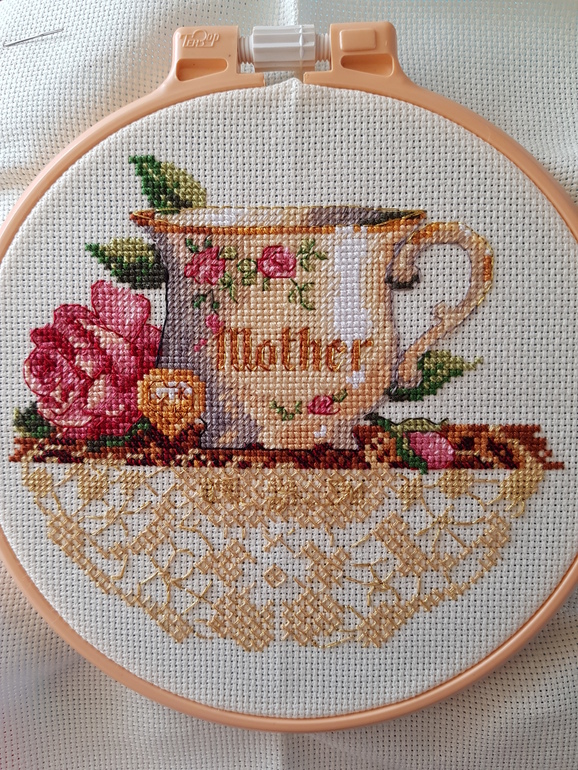 Мамина чашка очень красивая 😍 а салфетка вышивается металлизированной нитью?