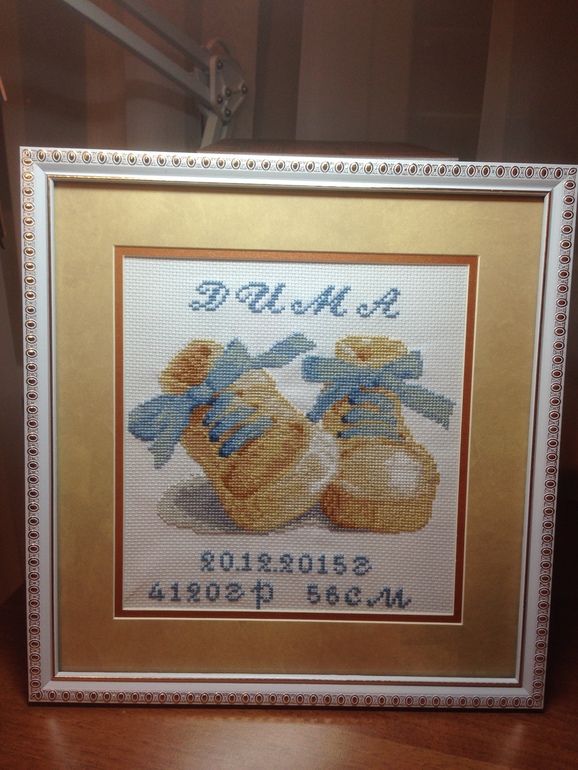 Я такую метрику Вервако "Пинетки" вышивала для сестрички. На прошлой неделе я распечатала схему с голубыми шнурками - решила, что пора сыну вышить метрику! А то сапожник без сапог(( А мне именно эти пинетки нравятся, ещё когда Маше вышивала влюбилась