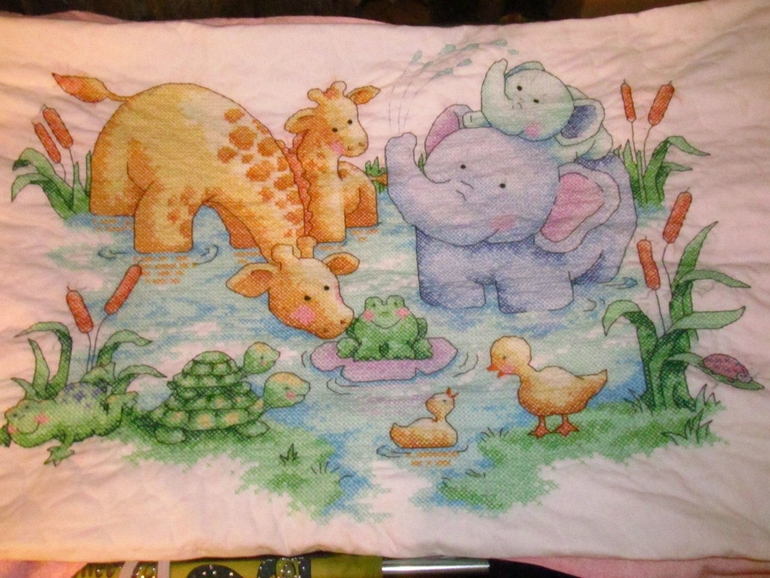 Ну меня конечно лось заворожил :) и детское одеялко такое нежное. Ты случайно аиста не вышивала , как примету для себя? Очень советую:)