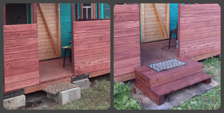И еще сделала, наконец, ступеньки для прошлогодней моей постройки - кухонной веранды: