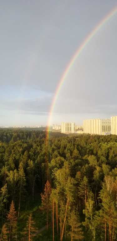 Радуга и правда так близко! Хочется бежать вон к той сосенке и искать под ней горшочек с золотом )
