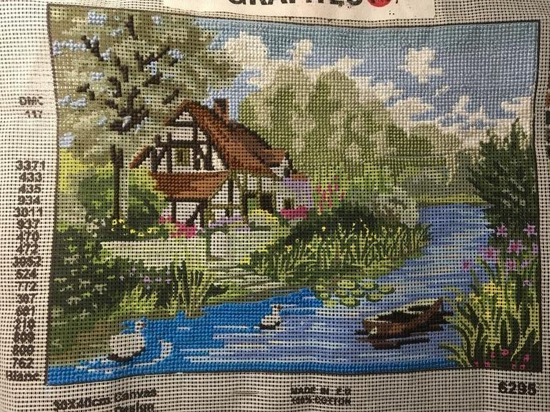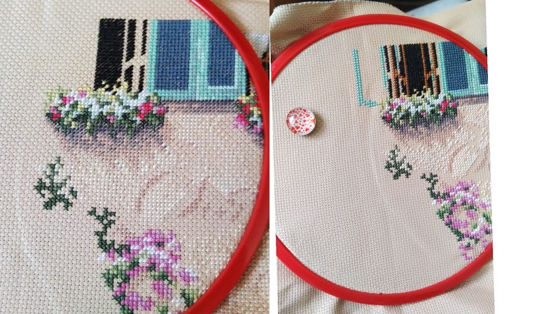Вышивка растёт. Появился дом, цветы и лодка. Докуплены все нитки и с новыми силами на этой недели можно идти дальше)))