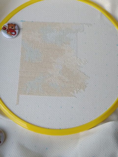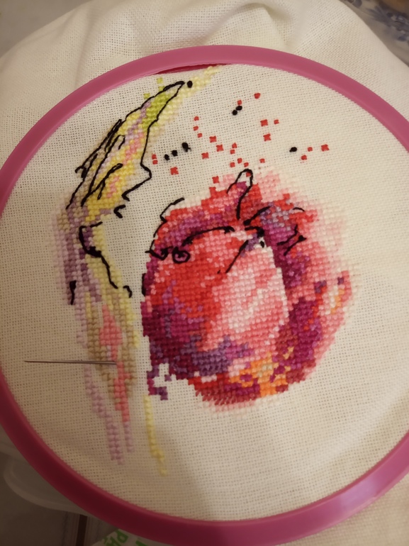 Честно говоря, меня этот процесс уже здорово расстроил. Впервые вышиваю мулине Анхор и это самые худшие нитки, с которыми мне довелось иметь дело (( Они махрятся, путаются, завязываются в узлы и рвутся постоянно (( Я сперва надеялась, что просто нужно привыкнуть к ним, что ниточки незнакомые, но вот прошла неделя, а я вышиваю и ругаюсь на них ( Хотя сам процесс такой легкий, схема простая, пока что вышивается фон, большими цветовыми участками - вот только сидеть и получать удовольствие. Но эти ниточки (( У меня были планы еще на несколько наборов от этой фирмы, но теперь я уже не уверена, что рискну вновь что-то вышивать у них.