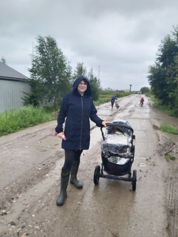 Это весь день дождь шел, мы решили пойти гулять под дождем, в итоге погучилась классная прогулка. Рядом поселок, ходили туда, по полю, такая красота!