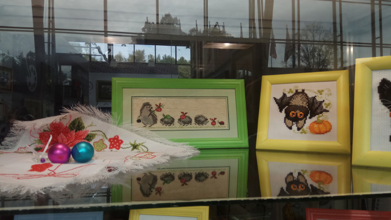 "Каролинка" Раньше привозили больше вышивок на одежде, сейчас были представлены и работы бисером (понравились элегантные дамочки), и лентами.