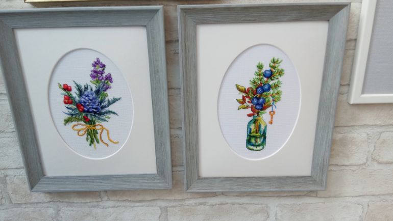 У РТО очень красивые оформления .Но мне так не сделать самой ) Тут прямо к каждой картине свое оформление подобрано, как продолжение вышивки ) Так классно!