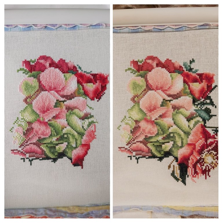 Вот наконец то загрузилось ! Было -стало .Левый верхний уголочек закончила и чуть подвинула пяльцы ,что бы удобнее было вышивать . Девочки ,добрый вечер . Фотографии не грузятся ,вай-фай не работает ,что то опять у нашей компании Гранель случилось ,весь дом без интернета . А с мобильного никак ,сначала даже в ББ зайти не давал ,хотя Ютьюб и Иг грузил . Вышивала по традиции пару вечеров ,немного совсем ,но есть ,как интернет заработает ,фотографии вставлю Это мы успели в последние теплые денечки погулять ,а в воскресенье вообще не выходили ,мокрый снег шел весь день . Правда дети хотели выйти ,вооружившись лопатой 🤣 .