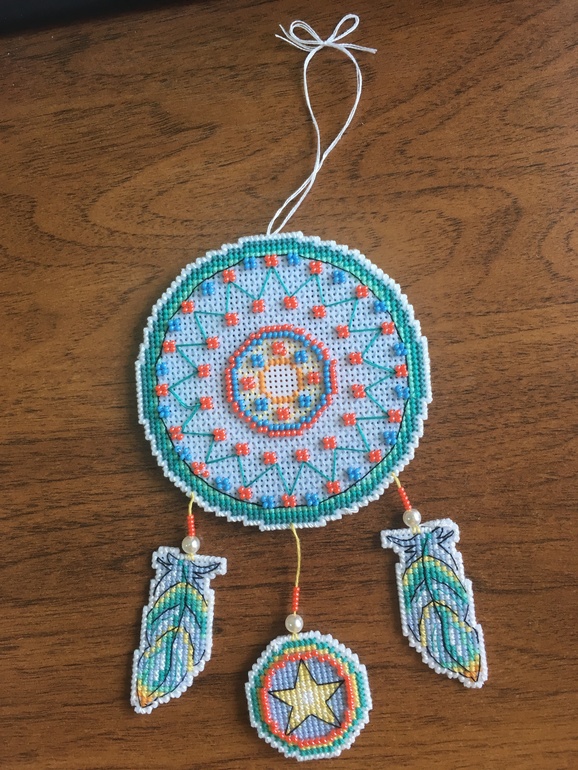 По вышивке: закончив я свой ловец снов, пока сшивала все детали пальцы исколола! Но результатом довольна: