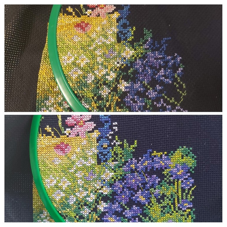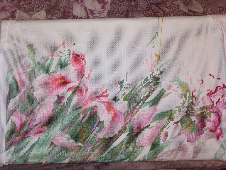 П о вышивке собой довольна! Распускаются мои ирисы, было/стало: