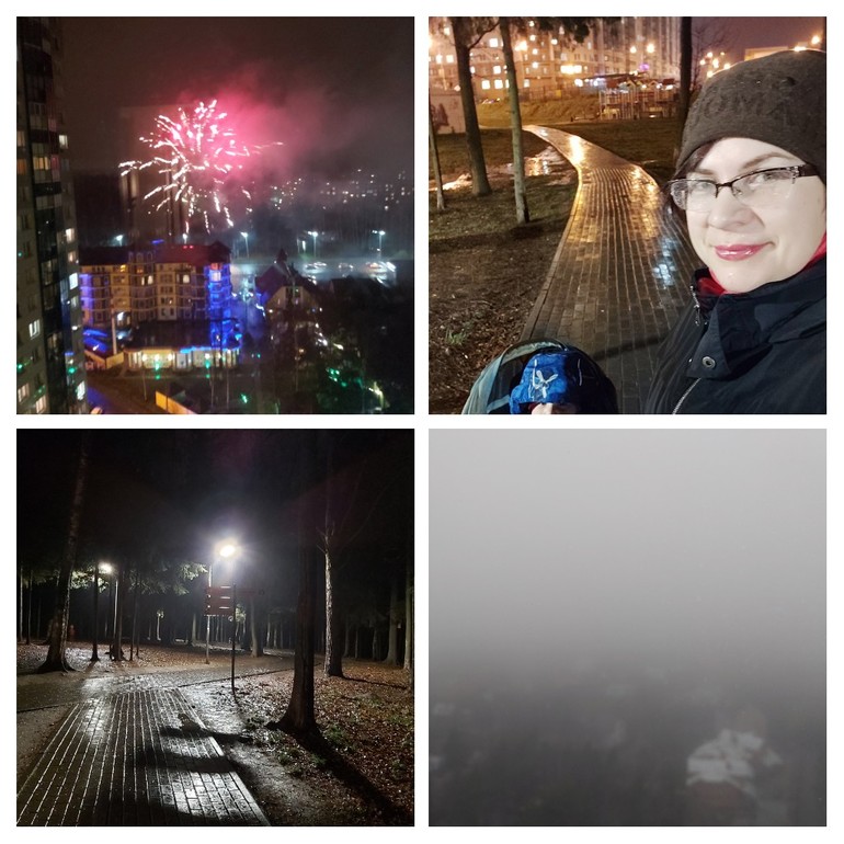 Это вот такая у нас погода- в четверг шли с сада под проливным дождем. А в выходные у нас тут был салют, видимо свадьба у кого-то. Из нашего окна все отлично видно было, детям понравилось ))